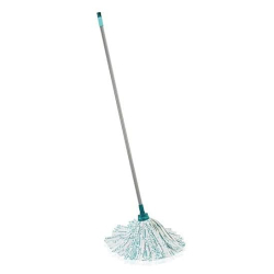 třásňový mop určený pro čištění dlaždic a kamenných podlah, vhodný i pro schody a rohy, vyměnitelná hlavice ze speciálních vláken s vysokou absorbcí, kterou lze prát v pračce na 60 ° C, ocelová násada 1,25 m s univerzálním závitem, na horním konci otvor p