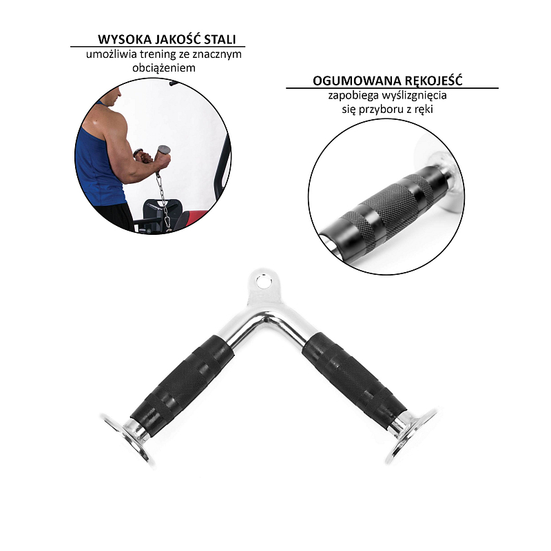 Tricepsový adaptér tvaru V HMS UW06 je vhodným doplňkem pro kladkové posilovací stroje. Gumové rukojeti s protiskluzovým povrchem pomůže konfortnímu cvičení.