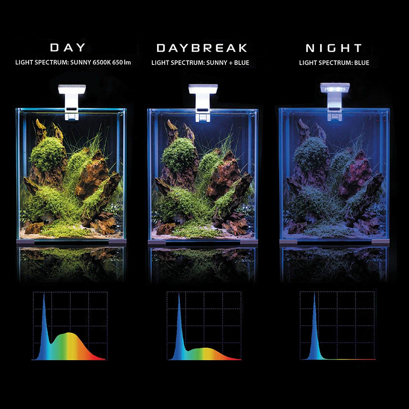 - Inteligentní LED denní a noční osvětlení 4.8W - 3 světelné režimy: DAY / DAYBREAK / NIGHT - Filtr Turbo Mini - 320 l / h - Regulace průtoku a směru proudu vody, s provzdušňováním - Fix 2 50W - Inteligentní topítko nastavuje topný výkon podle podmínek prostředí - Skleněné víko se systémem Smart Open - Moderní design