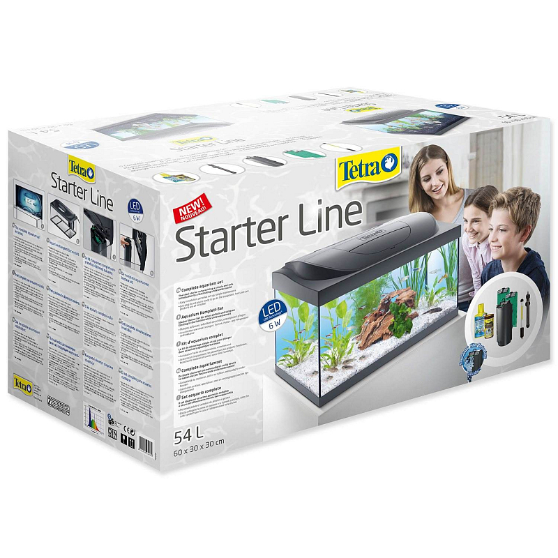 Ideální startovací sada s jednoduchou obsluhou a spolehlivou technologií. Set obsahuje: - Stabilní skleněné akvárium o obsahu 54 l, a 4 mm silným sklem - Robustní kryt ve stylovém zaobleném designu s pohodlnou klapkou na krmení ryb - 10-wattové, energeticky úsporné LED osvětlení - filtrační box Tetra Easy Crystal (3,5 W) pro moderní, čisté a efektivní filtrování - Spolehlivé 50 wattové topné těleso