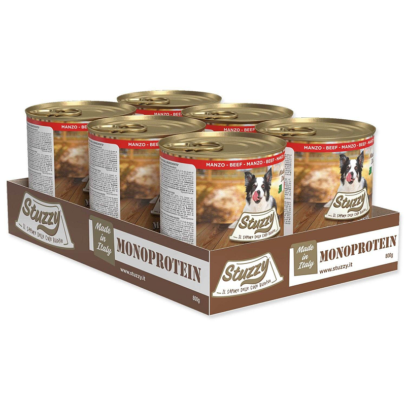 Složení: maso a živočišné produkty (70% hovězí maso), 28,9% hovězí vývar, minerální látky 1%, lněný olej 0,1%.