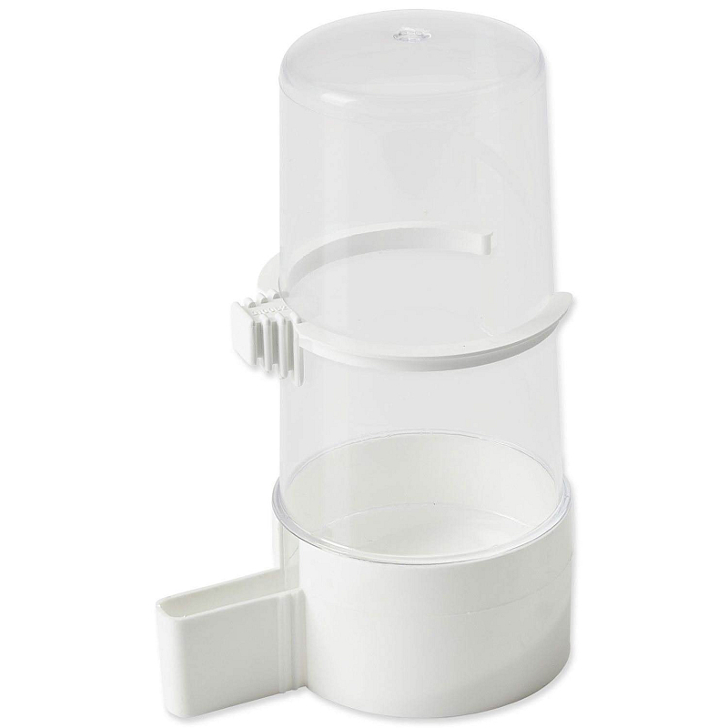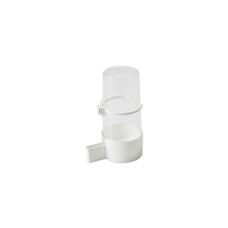 Plastová napáječka. Průměr: 7 cm, výška 16 cm.