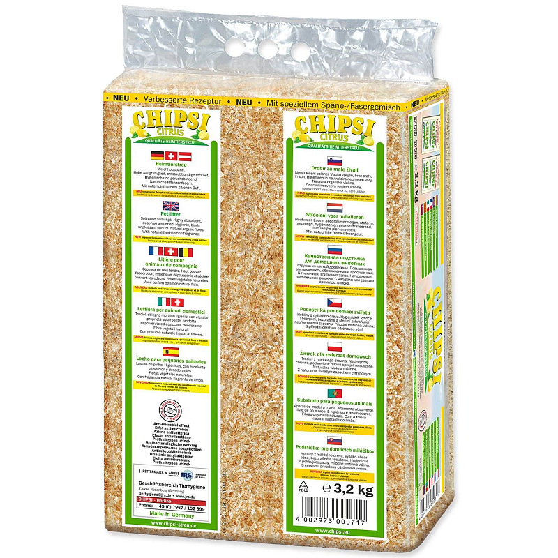 Podestýlka z hoblin s citrusovou vůní vhodná pro hlodavce.