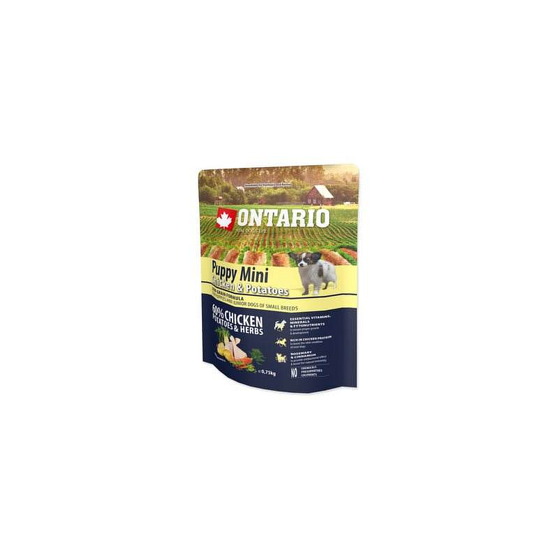 musí splňovat vysoké výživové a nutriční požadavky pro jejich správný vývoj a růst. Proto značka Ontario vyvinula ve spolupráci s veterináři a nutričními specialisty unikátní a výjimečně chutnou recepturu, která poskytuje vyvážené složení, správný poměr všech živin a dostatek energie pro kvalitní start Vašeho štěněte do života. Kvalitní strava je jednou z nejdůležitějších podmínek pro zdravý a dlouhý život Vašeho psa. Receptura krmiva je založená na vysokém podílu proteinů z kuřecího masa důležitých pro správný vývoj svalů a tkání a na bramborách, které jsou po tepelné úpravě nejlepším zdrojem sacharidu. S nízkým obsahem obilovin, bez pšenice a kukuřice. Jedinou obilovinou je rýže. Vyvážené složení pro zdravé fungování a vývoj celého organismu. Speciální mix bylinek a koření, zejména rozmarýn a skořice, pro podporu přirozené imunity a poskytující antibakteriální efekt. Krmivo obsahuje širokou škálu vitamínů a minerálů podporující zdravý růst a vývin.