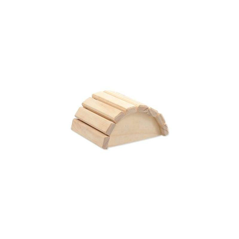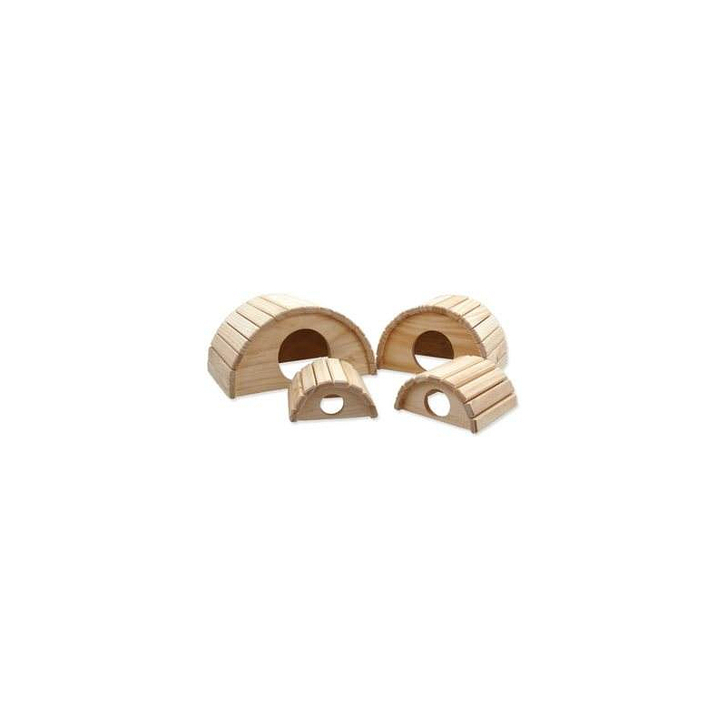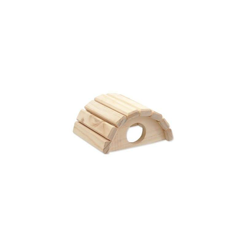 Dřevěný půlkruhový domek pro drobné hlodavce.
