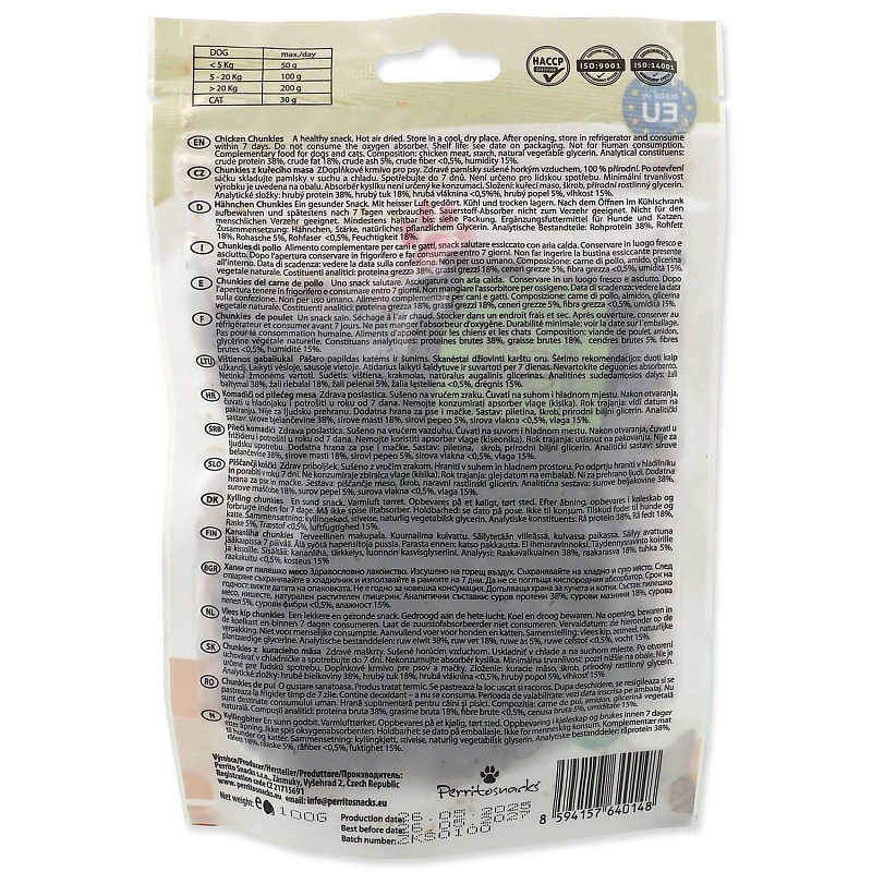 100% přírodní Chunkies z kuřecího masa.