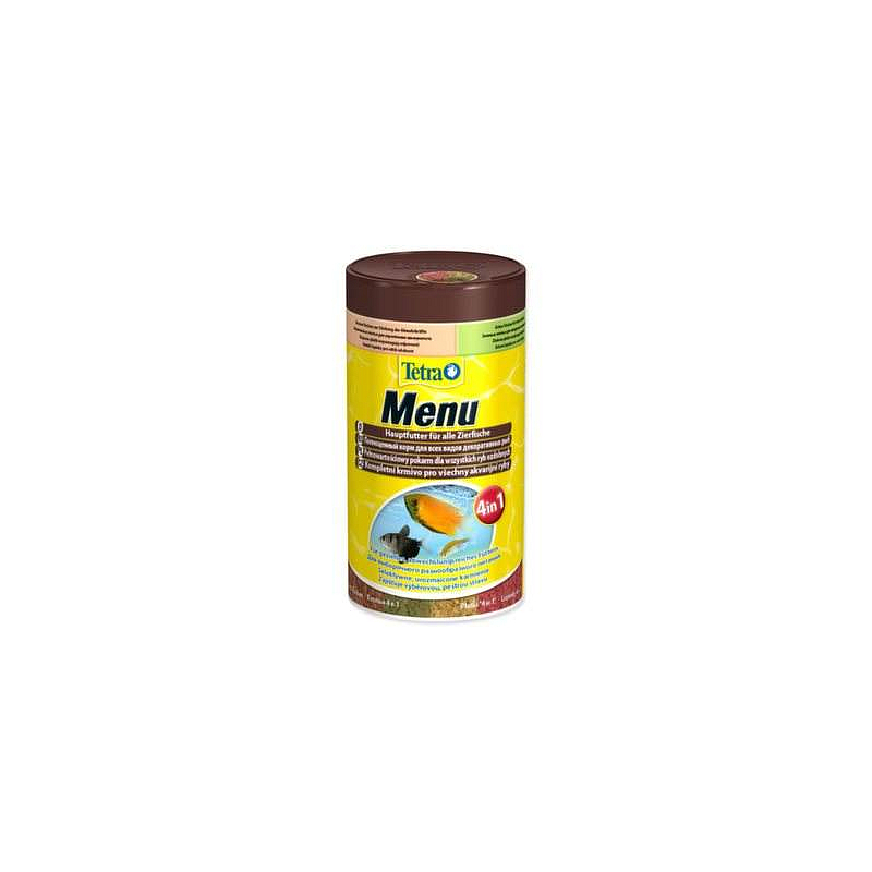 Čtyři druhy vločkových krmiv ve čtyřech nádobkách: žluté vločky podporují zdravý růst rybek, hnědé zvyšují odolnost, zelené přejí vitalitě, červené zlepšují plodnost. Obsahuje stabilní množství vitamínu C.