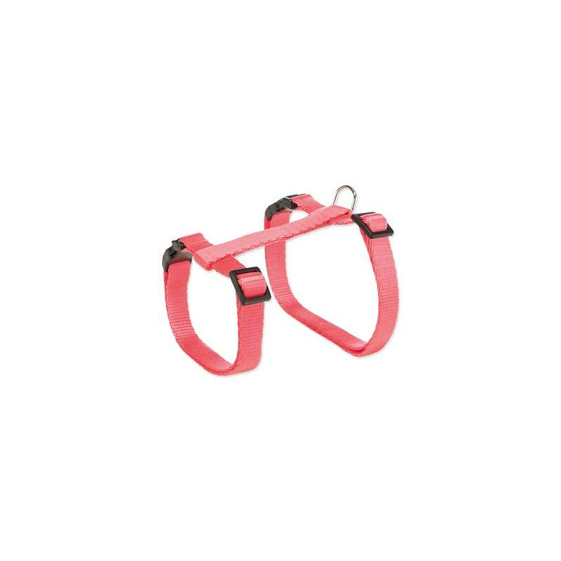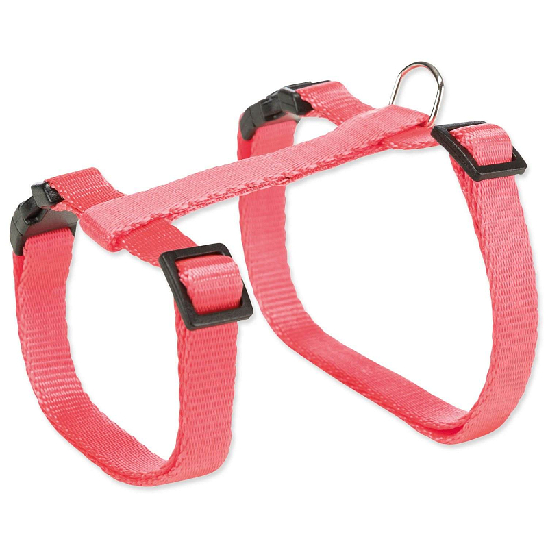 Postroj s vodítkem pro kočky milující vycházky. Je vyrobený z nylonu. Zapínání pomocí plastové rychlospony. Lehce nastavitelná velikost v rozmezí 26-43cm. Vodítko je dlouhé 1,2m.