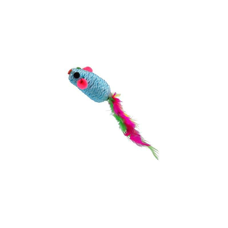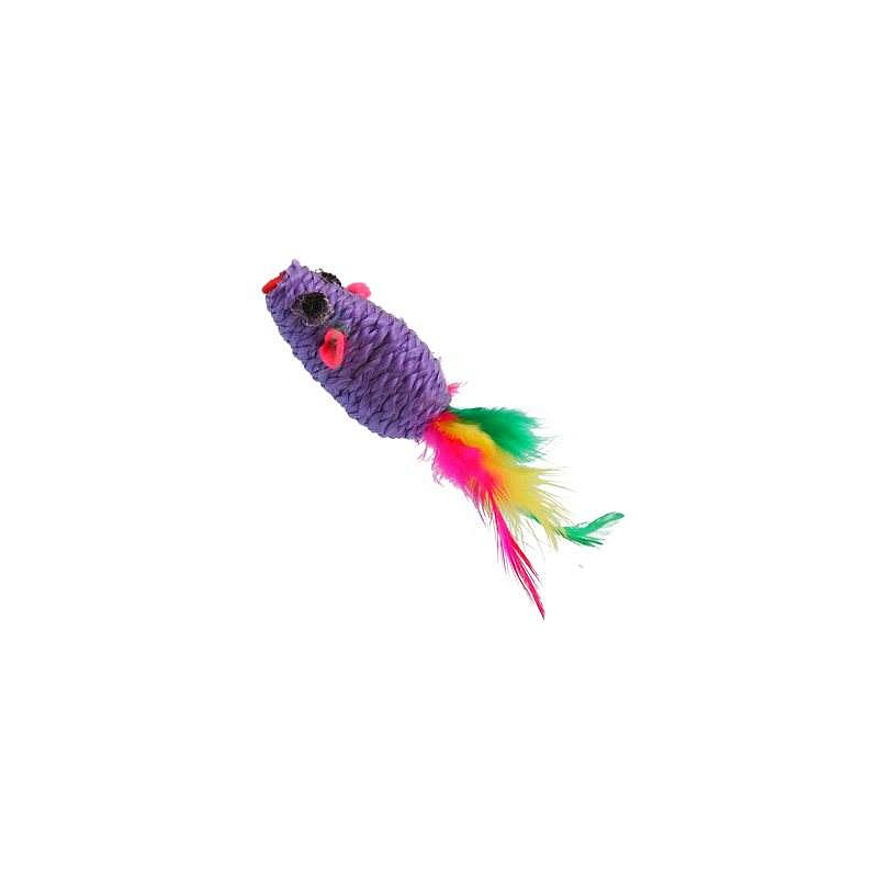 Bavlněná myška s pírky. Hračka, které Vaše kočka neodolá. Pírka lákají k aktivní hře.