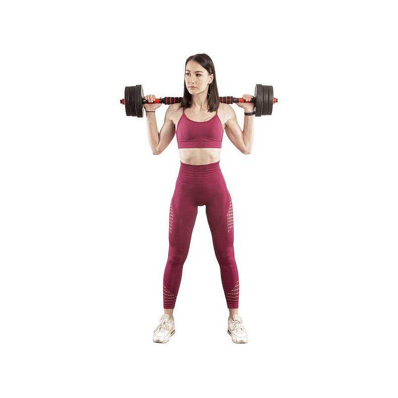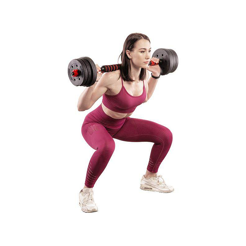 Moderní činkový set s možností nastavení zátěže, ocelová obouruční tyč,...