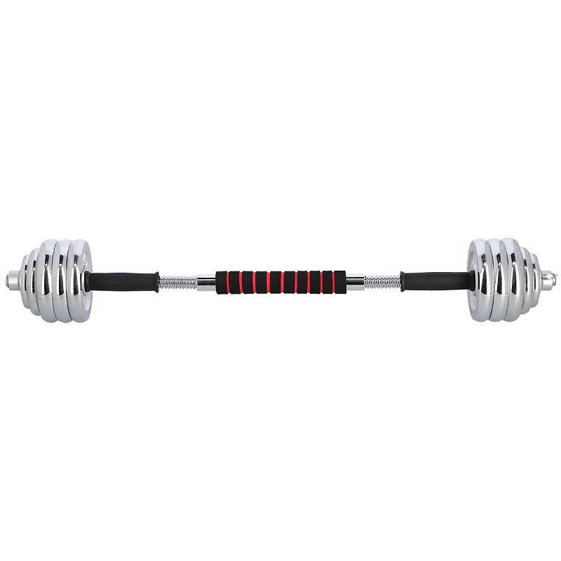 Moderní činkový set s možností nastavení zátěže, ocelová obouruční tyč,...