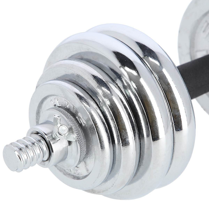 Činky jsou vyrobeny z vysoce kvalitní, chromované oceli, která je zárukou dlouhé životnosti. Kotouče se proti posunutí zajišťují šroubovacími zámky, které jsou dodatečně jištěny šroubem s křídlovou matkou.