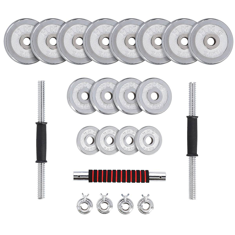 Speciální spojovací díl je po stranách opatřen závity, do nichž se jednoduše všroubují obě činky. Sada HMS STC30 je prvním modelem z naší nabídky, který umožňuje toto řešení, které šetří náklady a místo ve Vaší domácí posilovně. Sada obsahuje 2 krátké, nakládací osy opatřené ergonomickým úchopem, spojovací díl, 4 zámky a 16 kotoučů.