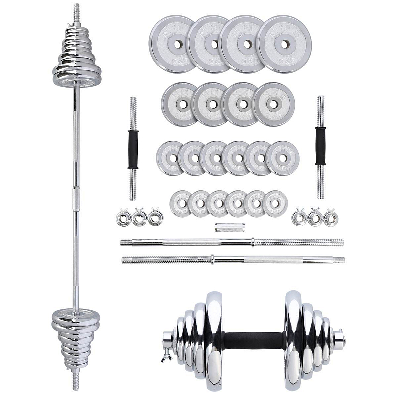 Činky jsou vyrobeny z vysoce kvalitní, chromované oceli, která je zárukou dlouhé životnosti. Kotouče se proti posunutí zajišťují šroubovacími zámky, které jsou dodatečně jištěny šroubem s křídlovou matkou.