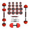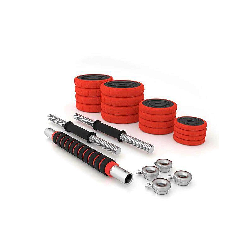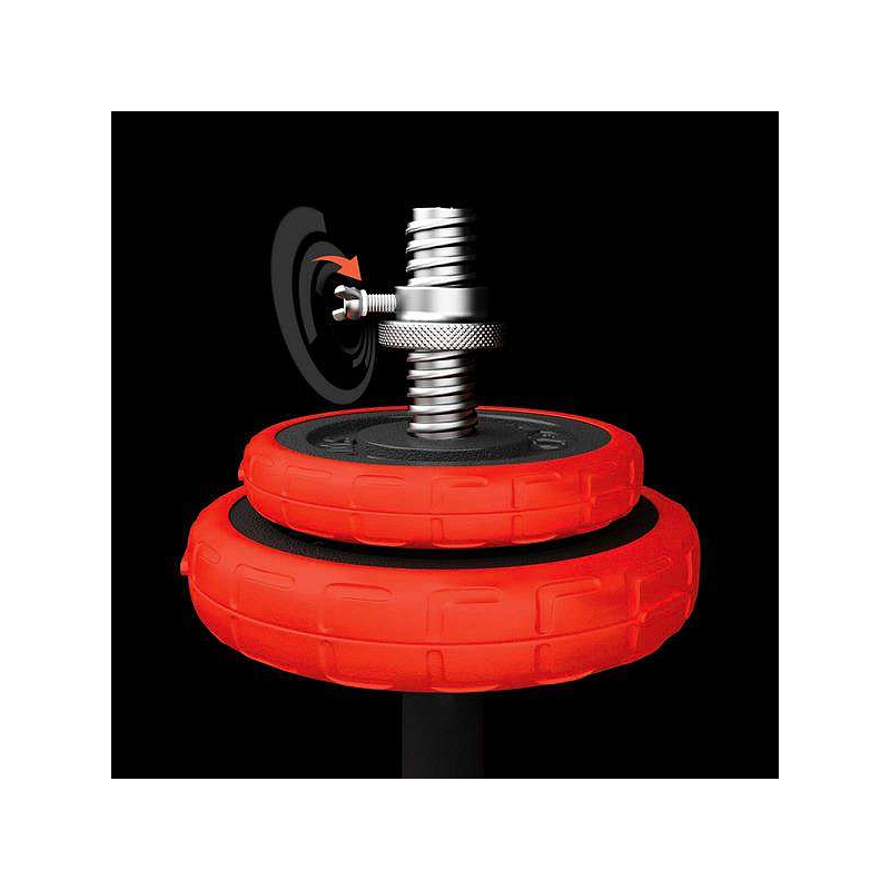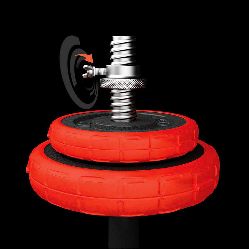 Moderní činkový set s možností nastavení zátěže, ocelová obouruční tyč,...