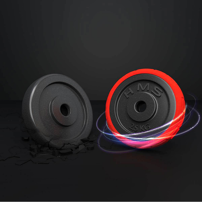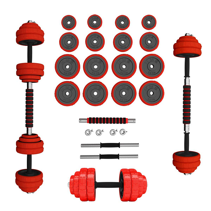 Sada SGGX HMS obsahuje dvě nastavitelné jednoruční činky s vyměnitelnými kotouči. Pomocí speciálního spojovacího adaptéru lze činky během chvíle propojit a vytvořit obouruční činku.