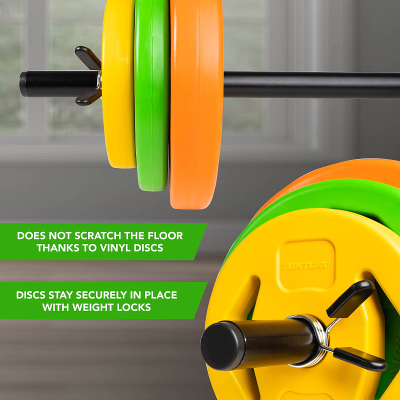 Tunturi Aerobic Pump set 20 kg.Činkový set se skládá z 6 barevných kotoučů a vzpěračské tyče.