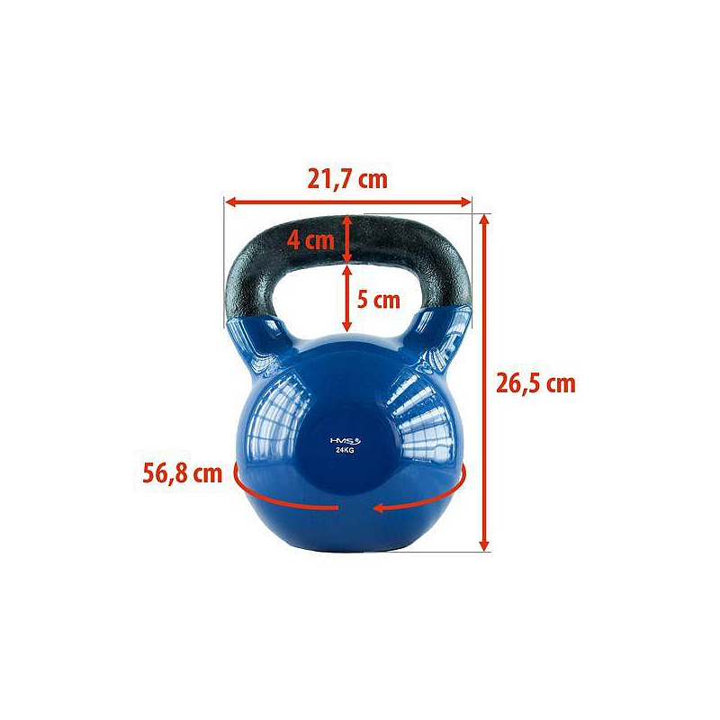 HMS Kettlebell je vyroben z vysoce kvalitní litiny pokryté vinylem.