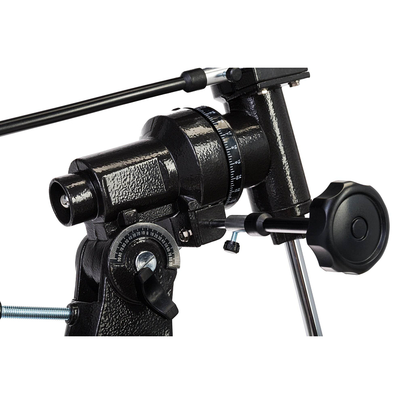 Rovníková (paralaktická) montáž EQ3 umožňuje mnohem intuitivnější pozorování nebeských objektů, neboť po správném seřízení a případném doplnění elektrickým pohonem do RA osy automaticky sleduje nastavený objekt. S lepší orientací vám také pomůže optický hledáček, který se pyšní až 6násobným zvětšením. Paralaktická montáž je ovládaná ručně, kdy se k vyrovnávání používá protizávaží a k zaostření pak poslouží 2 ovládací knoflíky s pomalým pohybem. V polární ose je jemný pohyb téměř neomezený, na deklinační ose je jemný pohyb v cca 40° rozsahu.