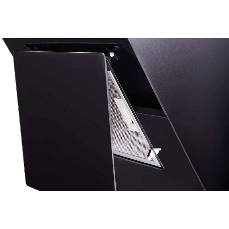 Elegantní komínový odsavač par ve tvaru T, se skleněným černým panelem...