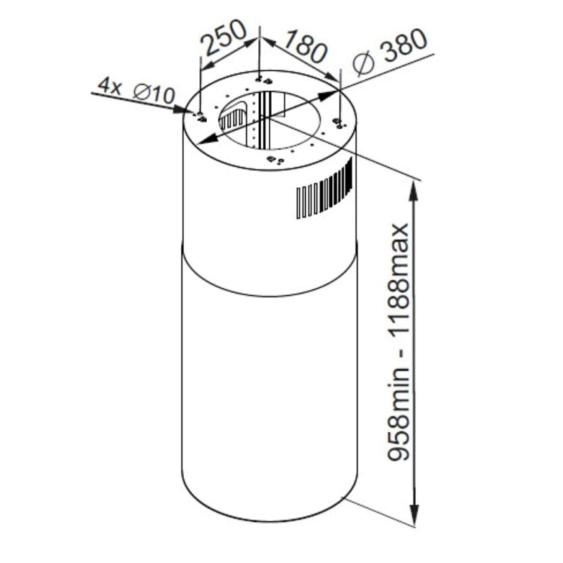 Moderní ostrůvkový komínový odsavač par v černé provedení Ø38 cm výkon 650...