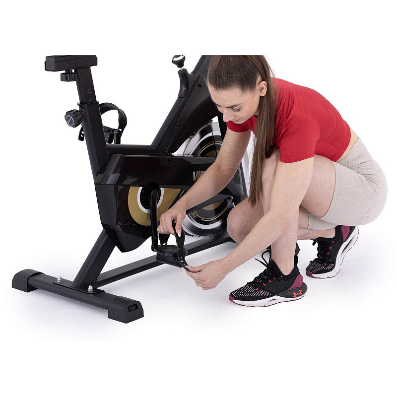 Pokud hledáte jeden z cenově nejdostupnějších a přitom kvalitních cyklotrenažérů, určený pro nenáročné domácí využití, který vám umožní kvalitní cvičení v pohodlí domova, pak se VIFITO Spino 200 stane vaším ideálním parťákem pro pravidelný trénink. Nemusíte být nijak vázaní na venkovní prostředí a ani na otevírací dobu fitnesscenter. Díky pečlivě vyvinuté konstrukci s dostatečnou nosností, kvalitnímu zpracování a setrvačníkovému kolu s hmotností 8 kg zaručuje trenažér tichý a plynulý chod. Zátěž při šlapaní si snadno upravíte pomocí otočného regulátoru, který také slouží jako bezpečnostní STOP pojistka.