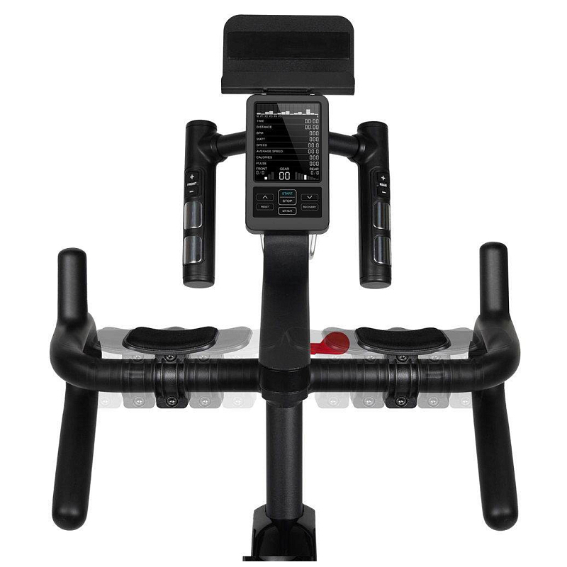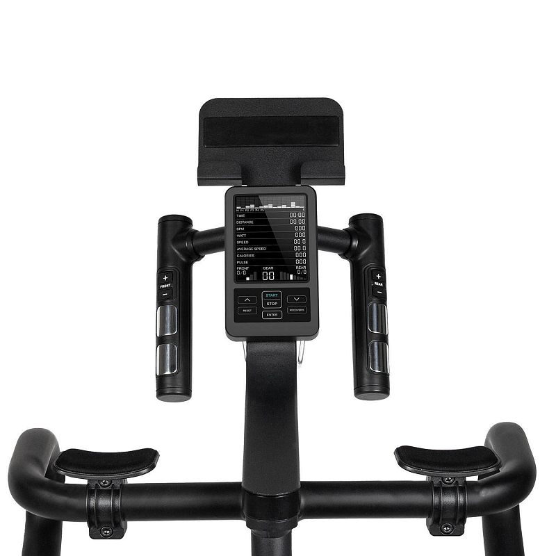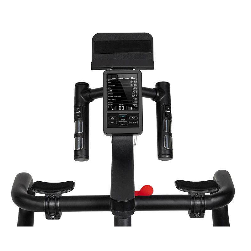 | Měřené hodnoty: | Spálené kalorie, Tep srdce, Čas šlapání, Rychlost, Ujetá vzdálenost, Frekvence otáček, Výkon (W), Zobrazení zátěže na displeji |