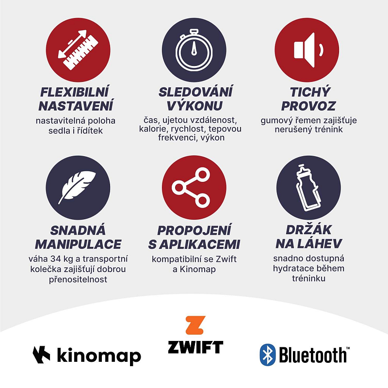 Domácí použití, nosnost 135 kg, Bluetooth, nastavitelné sedlo i řídítka,...