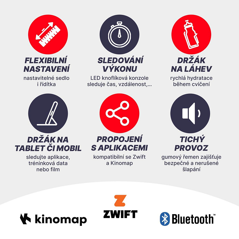 Domácí použití, nosnost 135 kg, Bluetooth, nastavitelné sedlo i řídítka,...