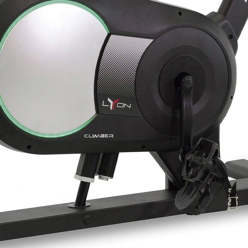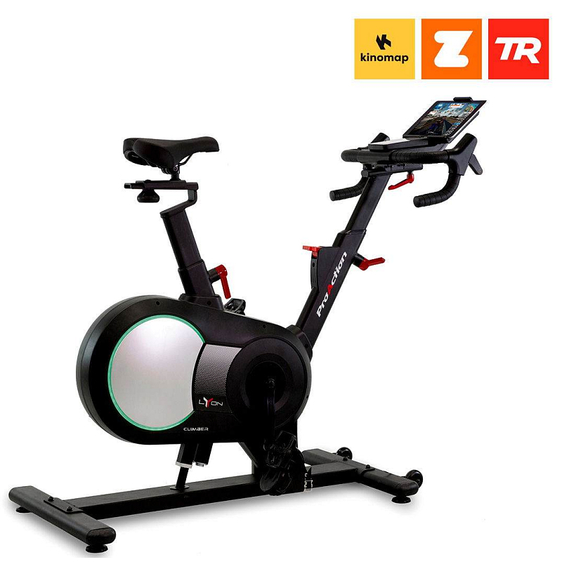BH Fitness Lyon Climber je vylepšený model cyklotrenažéru, který dokáže měnit sklon podle aktuálního sklonu dle aplikace nebo programu. Trenažér simuluje sklon v rozsahu -8 až 16°, nabízí tak reálný zážitek z jízdy ať už jedete z kopce, nebo do kopce. BH Fitness Lyon Climber je vhodný pro náročný domácí trénink, dokonale simuluje klasické silniční kolo s možností šlapání i "ve stoje".