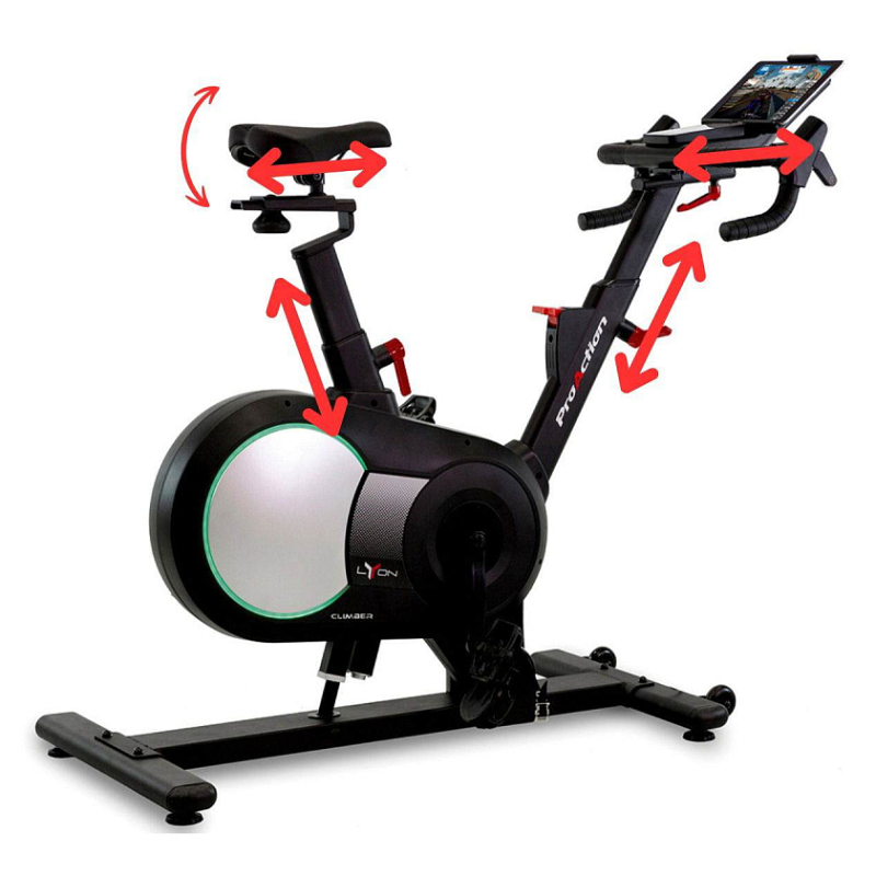 BH Fitness Lyon Climber poskytuje výbornou ergonomii, kterou lze individuálně optimalizovat. Sedlo lze nastavit ve vertikálním i horizontálním směru včetně polohování sklonu, řídítka lze upravit ve vertikálním a horizontálním směru.