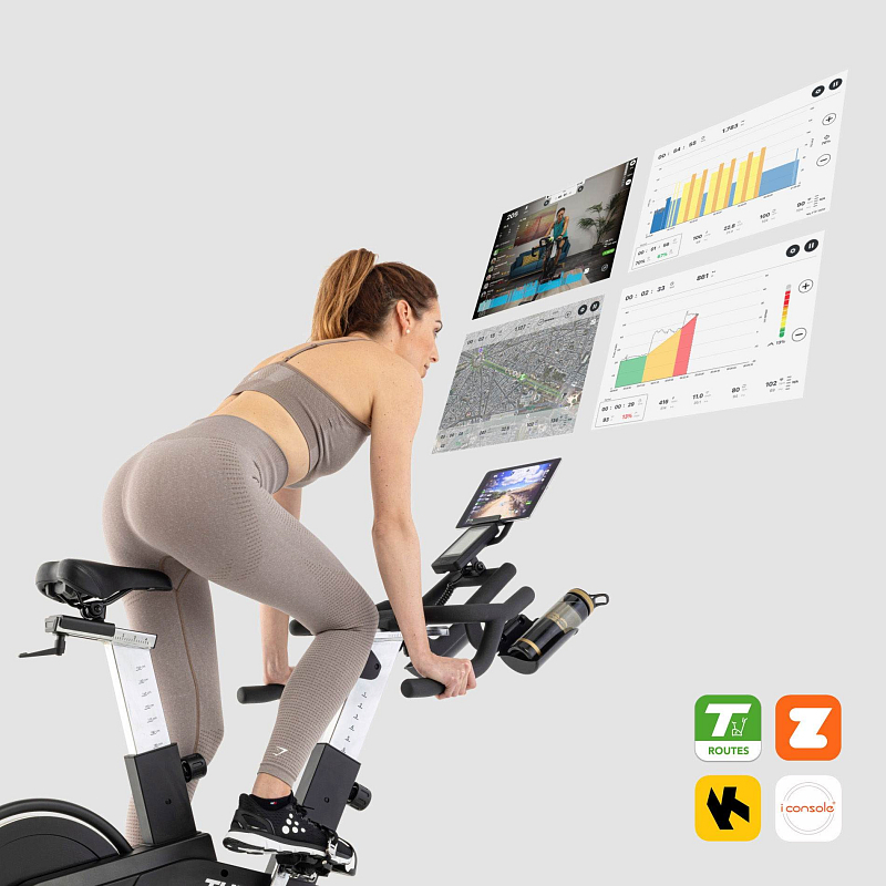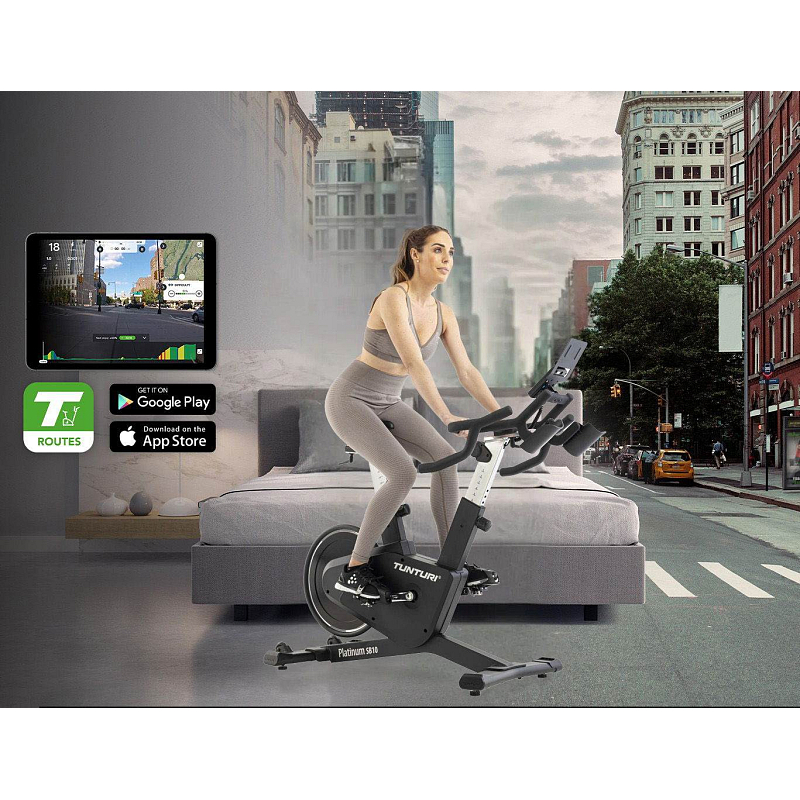 Tréninkové aplikace - Chcete si rozšířit programovou nabídku a udělat si trénink ještě zábavnější? Pak se můžete přes Bluetooth připojit k tréninkovým aplikacím Tunturi Routes, iConsole+ Training, Zwift nebo Kinomap. Díky aplikacím máte k dispozici systém Google Maps, což vám umožní vytvářet vlastní trasy a překonávat nové výzvy.
