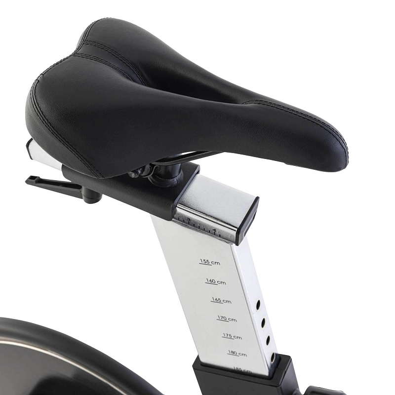 Vždy optimální poloha sezení. Díky zřetelnému označení délky na sedlovce můžete sedlo přesně nastavit podle své výšky. To je ideální, pokud například používá jeden cyklotrenažér více lidí a vy potřebujete před tréninkem nastavit sedlo dle své výšky a preferencí. TUNTURI PLATINUM S10 se dodává se závodním sedlem, pokud vám však nebude vyhovovat, můžete jej vyměnit dle preference za jiné, díky univerzálnímu úchytu. Cyklotrenažér TUNTURI PLATINUM S10 je vhodný pro uživatele s hmotností do 180 kg.