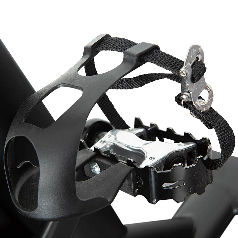 Dlouhodobou životnost stroje zaručuje profesionální šlapací střed s průmyslovými kuličkovými ložisky a klikami na čtyřhran. Pedály mají nastavitelné řemínky.