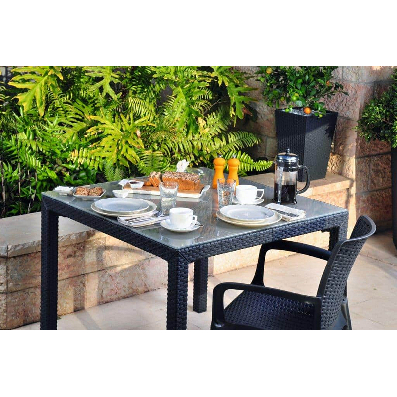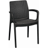 Židle je vyrobená z polypropylenové pryskyřice, která židli propůjčuje extrémní odolnost vůči povětrnostním vlivům, UV záření i proti mechanickému a jinému opotřebení, takže vám bude sloužit spolehlivě a po dlouhou dobu. Vzhledem k ochraně před UV zářením barva židle nevybledne ani na přímém slunečním svitu. Navíc tento materiál přináší také velice líbivý design, kdy povrch křesla imituje pletený vzor přírodního ratanu. Na údržbu vám postačí vlhký hadřík, kdy různé šmouhy a nečistoty na povrchu židle odstraníte pouhým setřením, což minimalizuje starosti s úklidem.