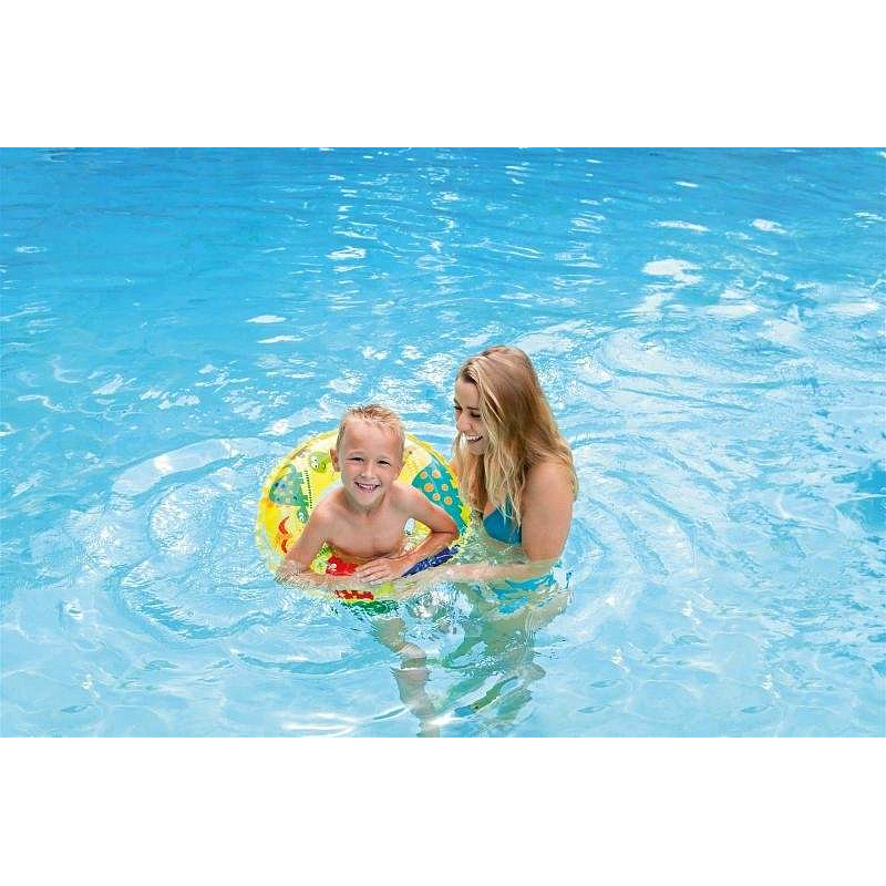 Nafukovací kruh pro děti na vodu s pěkným potiskem. Podpůrná plavecká pomůcka na plavání pro malé děti a jejich první seznámení se s vodou. Vyrábějí se v nejrůznějších veselých barevných kombinacích a motivech potisku.