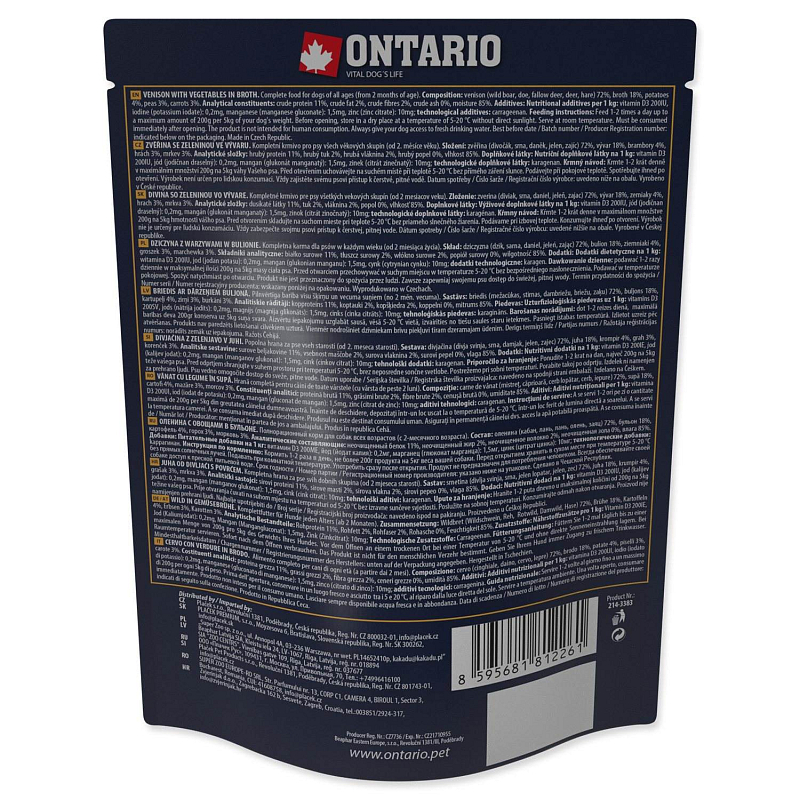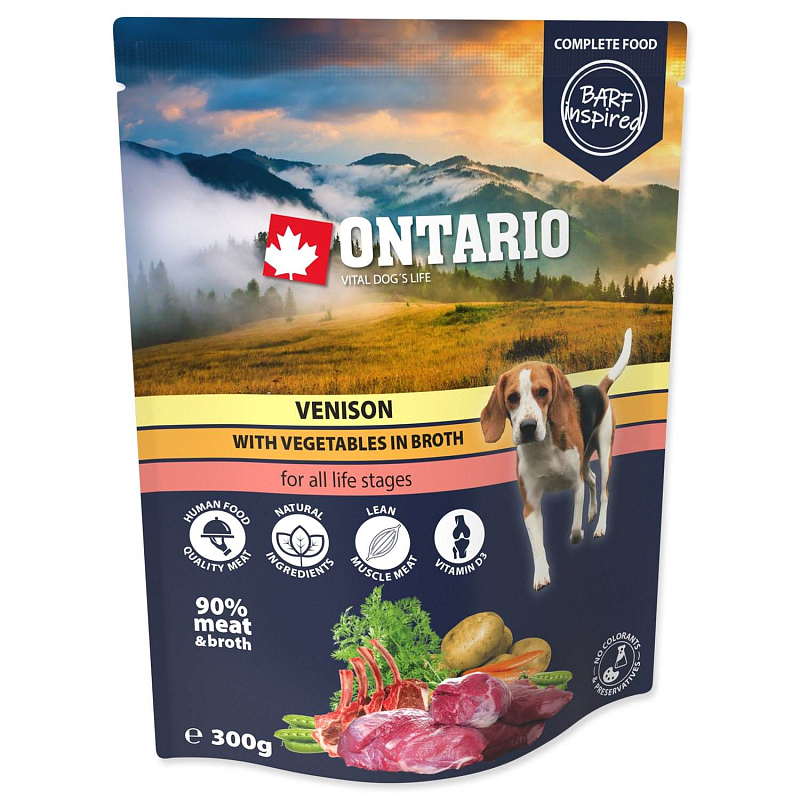 Kompletní krmivo pro psy všech věkových skupin (od 2. měsíce věku) inspirováno Barfem. Při výrobě kapsiček jsou používány pouze vysoce kvalitní ingredience čistě přírodního charakteru. Maso je v kvalitě pro lidskou spotřebu. Kapsičky jsou tepelně sterilizované, neobsahují tak žádné konzervanty. Přirozený vzhled a aroma bez jakýchkoli dochucovadel a barviv. Složení: zvěřina (divočák, srna, daněk, jelen, zajíc) 72%, vývar 18%, brambory 4%, hrách 3%, mrkev 3%. Analytické složky: hrubý protein 11%, hrubý tuk 2%, hrubá vláknina 2%, hrubý popel 0%, vlhkost 85%. Doplňkové látky: Nutriční doplňkové látky na 1 kg: vitamin D3 200IU, jód (jodičnan draselný): 0,2mg, mangan (glukonát manganatý): 1,5mg, zinek (citrát zinečnatý): 10mg; technologické doplňkové látky: karagenan. Krmný návod: Krmte 1-2krát denně v maximálním množství 200g na 5kg váhy Vašeho psa. Před otevřením uchovávejte na suchém místě při teplotě 5-20 °C bez přímého záření slunce. Podávejte při pokojové teplotě. Spotřebujte ihned po otevření. Výrobek není určen pro lidskou konzumaci. Vždy zajistěte svému psovi přístup k čerstvé, pitné vodě.
