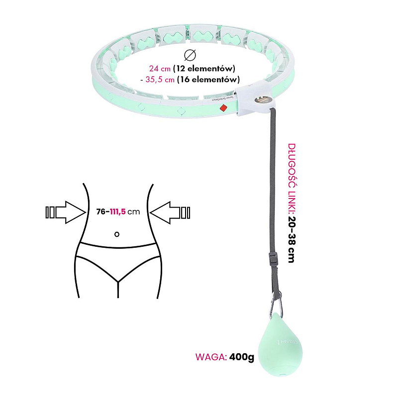 HMS HHW06 je hula hop obruč s nastavitelnou délkou, masážními výstupky a...