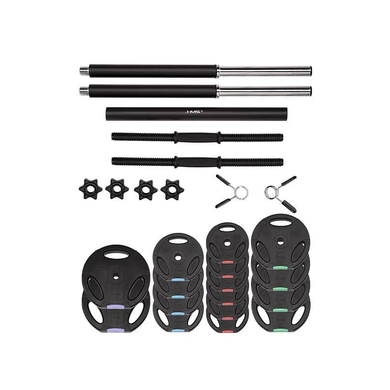 Kompletní nakládací sada dvou jednoručních a jedné obouruční činky o celkové hmotnosti 62 kilogramů, to je HMS SGSP60. Nakládací činky patří ke klasickému vybavení každé domácí posilovny.