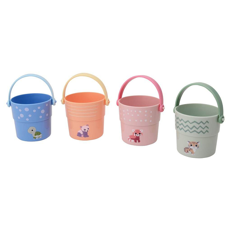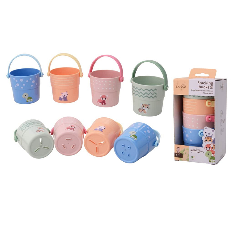 Plastové stohovací kelímky v pastelových barvách. Učí děti jemnou motoriku a rozenávat barvy, lze používat i ve vodě. Čtyři kusy v balení.