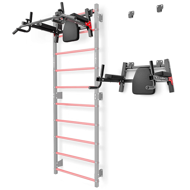 Bradla s hrazdou MARBO Sport MH-U205 jsou určeny pro zavěšení na zeď, nebo na žebřiny. Variabilita MH-U205 je postavena na 3 párech háků, které naleznete v balení. První 2 páry jsou určeny pro montáž na zeď: 1. pár se použije pro montáž do ideální výšky pro hrazdu a 2. pár se upevní do výšky pro použití bradel. Pro bezpečné použití je nunté zvolit správné kotvení podle materiálu stěny. 3. pár se použije v případě zavěšení na žebřiny a připevňuje se na konstrukci MH-U205.