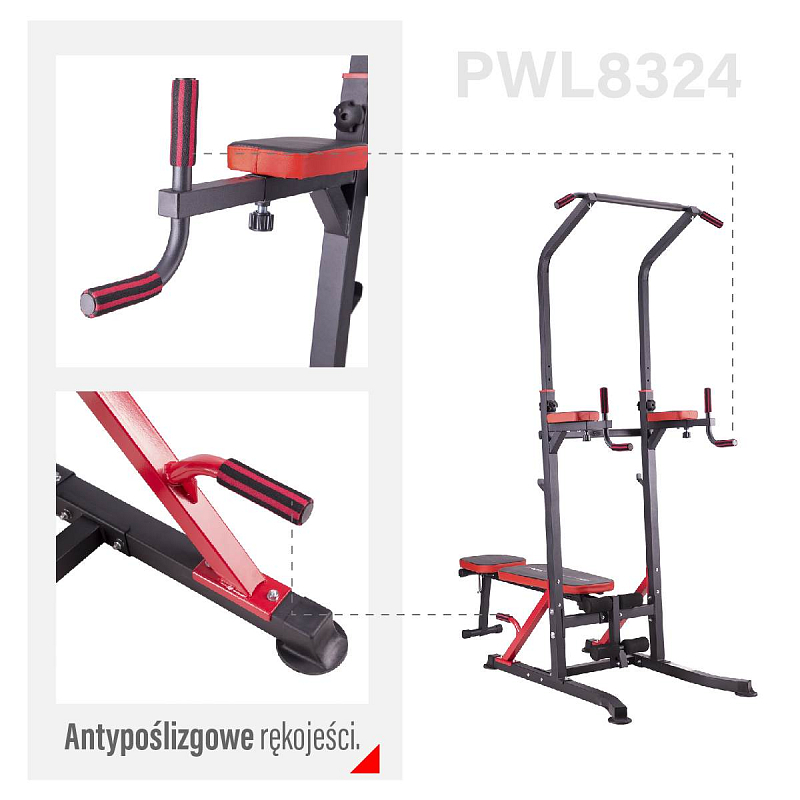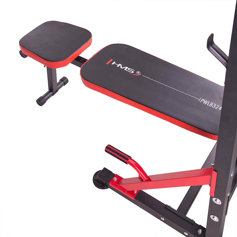Přítahy na hrazdě a kliky na bradlech neboli "dipy" jsou dva cviky, které velmi silně rozvíjejí dvě skupiny agonistických a antagonistických svalů, tedy nejširší zádové svaly, bicepsy, prsní svaly a tricepsy. Spodní podpěry umožňují provádění hlubokých kliků. Díky tomu svaly při každém pohybu mnohem více protáhneme, což vede k jejich rychlejšímu růstu. S PWL8324 je také možné trénovat břišní svaly díky lavici v šikmé poloze a područkám umístěným na bradlech. Lavičku lze nastavit i do vodorovné polohy, což umožňuje provádět cviky s činkami. Integrovaný držák na velkou činku umožňuje trénovat Bench press. Všechny komponenty dělají z tohoto výrobku HMS skutečně multifunkční zařízení.