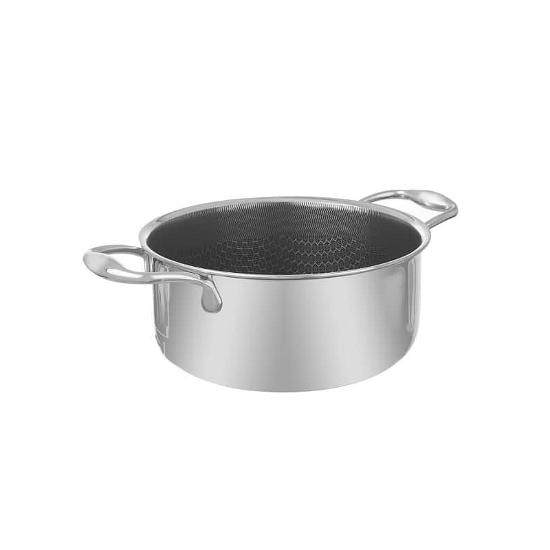 Hrnec průměru 20 cm má uvnitř mnoho bodů, které mají vrstvu povrchu navíc, má tudíž větší tepelnou konzervaci a vyšší přenos tepla než obvyklé nádobí. Díky tomu bude restování, dušení, smažení, opékání a zapékání vašich kulinářských specialit a oblíbených jídel rovnoměrné, efektivní a rychlé.