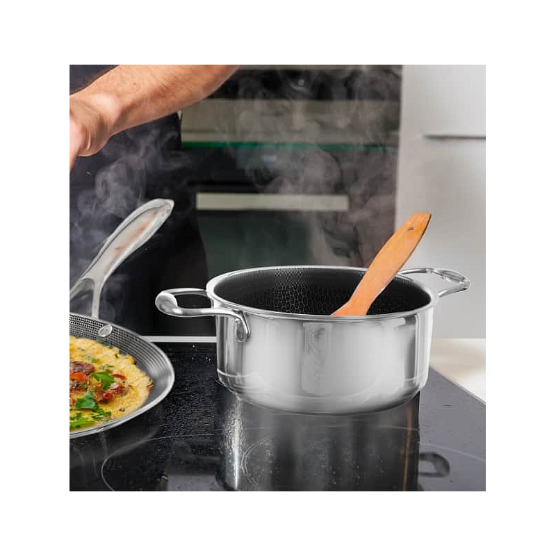 Unikátní hrnec z řady nádobí COOKCELL kombinuje nepřilnavý povrch se specifickou strukturou připomínající včelí plástve, a kvalitní nerezovou ocel.