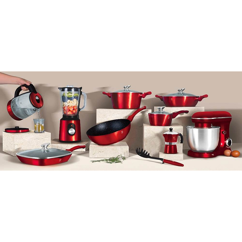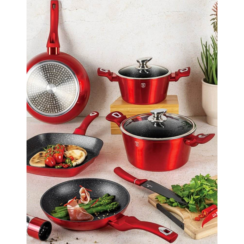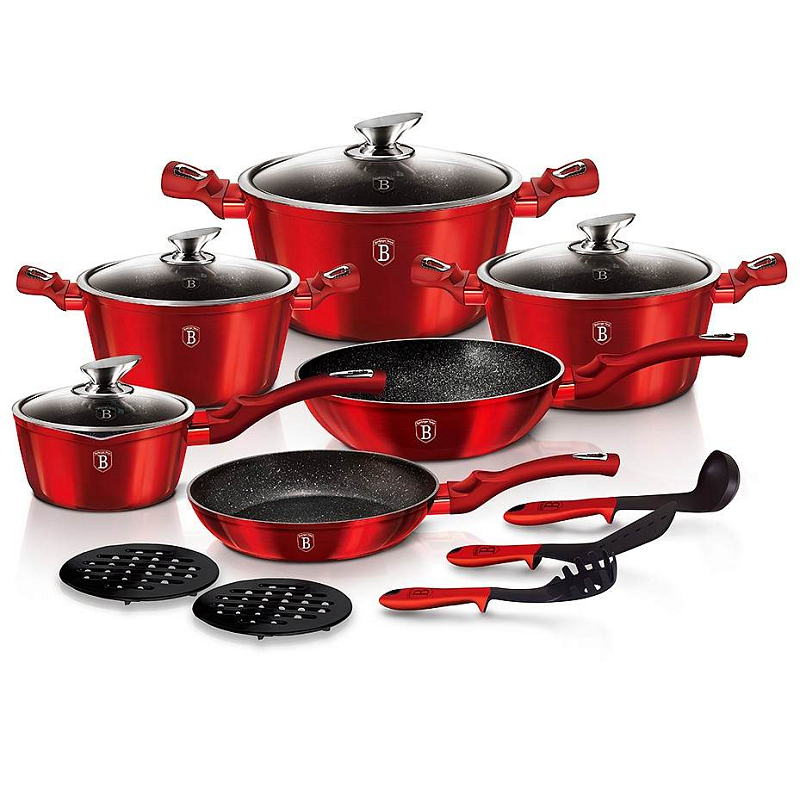 Hledáte vhodnou sadu nádobí do vaší kuchyně? Sadou získáte všechny potřebné nádoby na vaření, ať už budete vařit pro sebe nebo pro více osob. Velkou výhodou je, že můžete objednat najednou více nádobí od ověřeného výrobce BERLINGERHAUS. Sadu nádobí sjednocuje jednotný design, navíc červená barva celé sady je univerzální a vyjímat se bude v každé kuchyni.