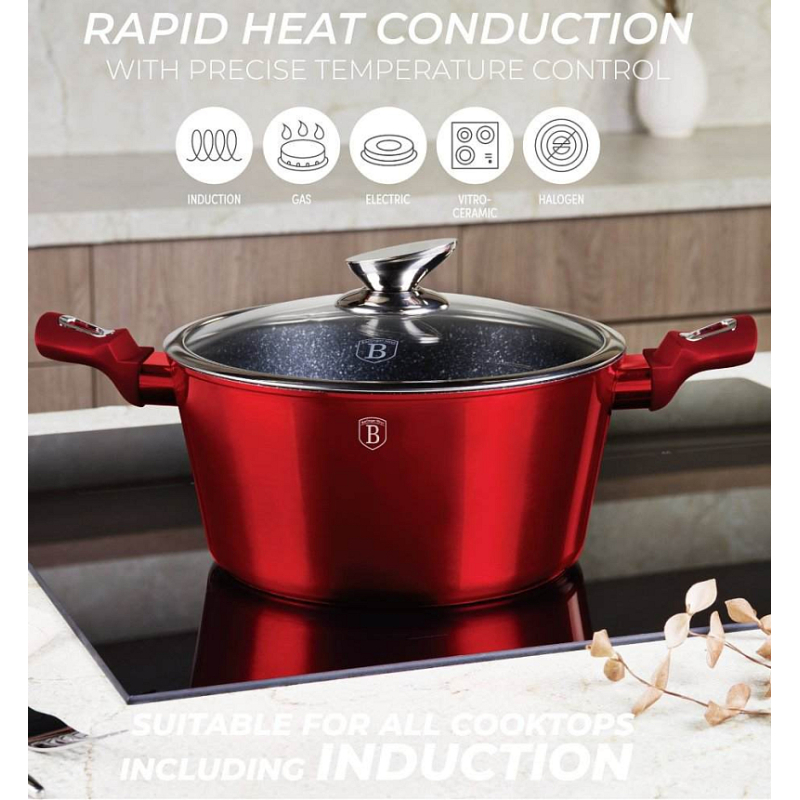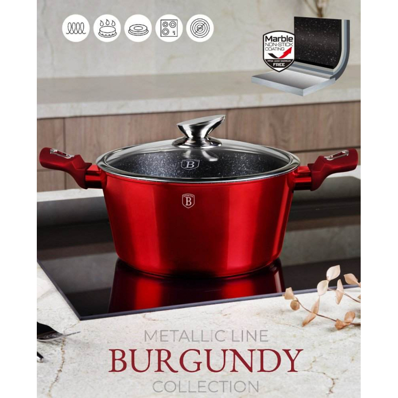 Bohatě vybavená sada nádobí z metalické burgundy kolekce zaujme nejen...