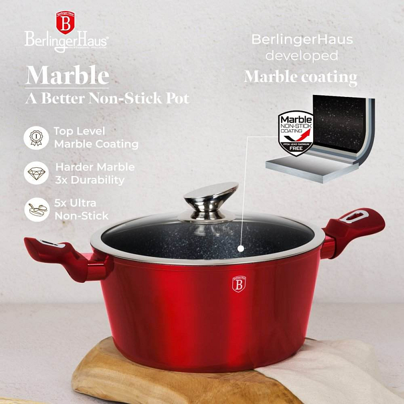 Velký kastrol s mramorovým povrchem a poklicí v atraktivním designu. Součástí...