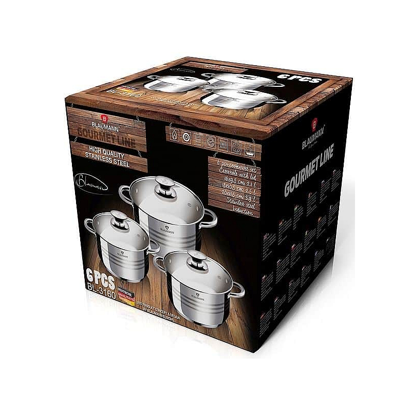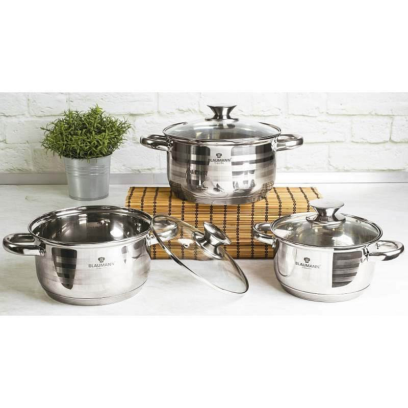 Hledáte vhodnou sadu nádobí do vaší kuchyně? Sadou získáte všechny potřebné nádoby na vaření, ať už budete vařit pro sebe nebo pro více osob. Velkou výhodou je, že můžete objednat najednou více nádobí od ověřeného výrobce BLAUMANN. Sadu nádobí sjednocuje jednotný design, navíc nerezová barva celé sady je univerzální a vyjímat se bude v každé kuchyni.