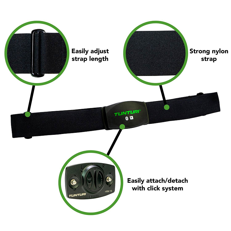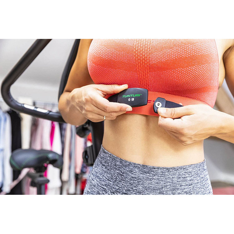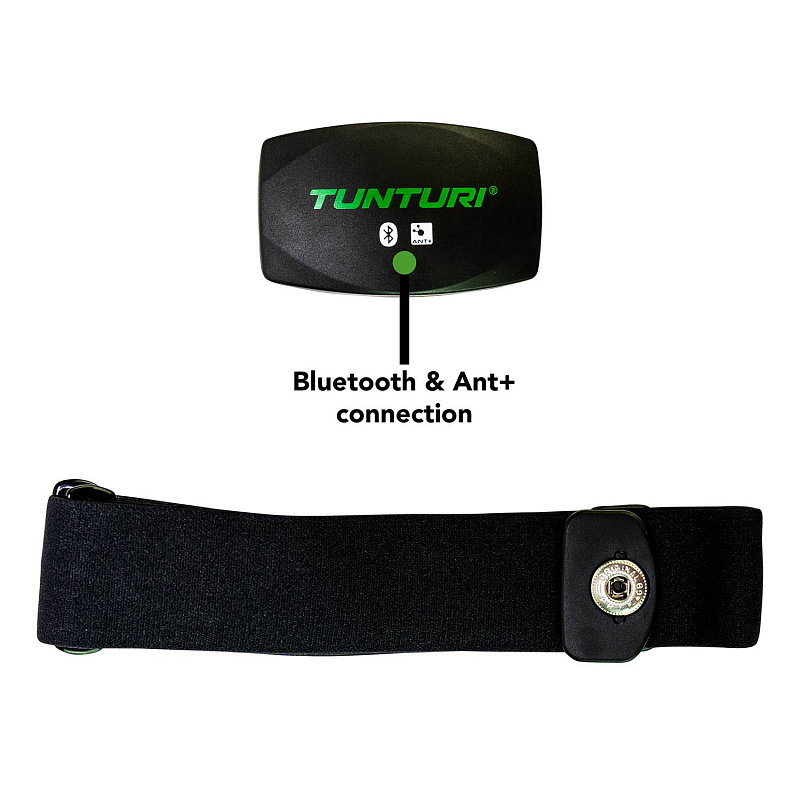 Zařízení disponuje elastickými pásky, které zajišťují přizpůsobení se různé velikosti hrudníku s rozměrem od 65 - 95 cm. Hrudní pás TUNTURI Digital Bluetooth / ANT+ má dosah do 120 cm a komunikuje přes 4.0 bluetooth systém a ANT+ technologii. Ihned se napáruje na trenažéry Tunturi s bluetooth systémem. V neposlední řadě je důležité říci, že měření prostřednictvím hrudního pásu je nejpřesnější (oproti dlaňovým snímačům, či ušní upínce).