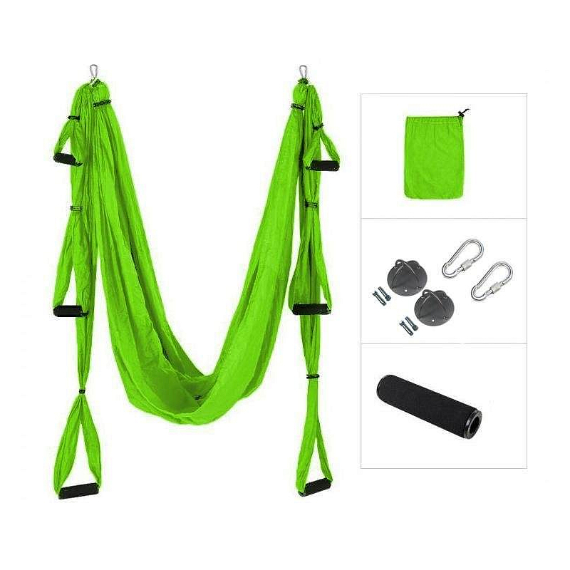 Samotný závěs na aerojógu je jak už se řeklo velký šátek, jenž má schopnost udržet váhu našeho těla a samozřejmě i napětí, které při cvičení vzniká. Nosnost hamaky pro aerojógu je až 120 kg. Materiálem je nylon. Jde o pevný materiál, jenž je současně velice příjemný na omak.